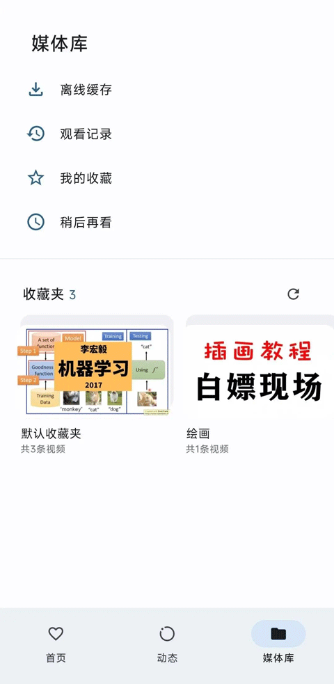 第三个则是媒体库,也就是自己的一些离线缓存、观看记录、收藏、稍后再看什么的,不过部分功能还在开发中