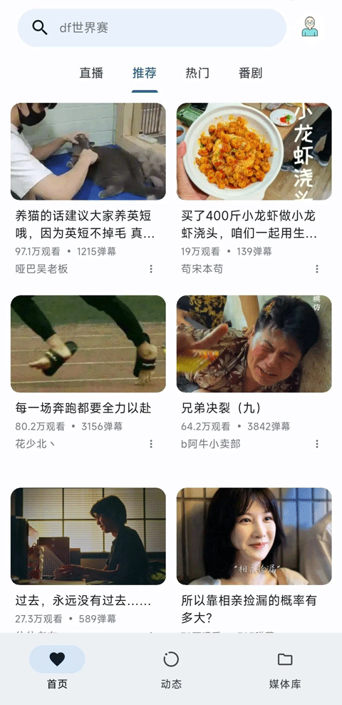 因为小棉袄也经常使用动态界面,因此PiliPala把它放第二个界面非常贴合小棉袄的使用习惯