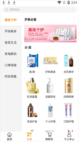 美妆个护、环球美食、居家生活、家电数码、口碑保健、时尚穿戴