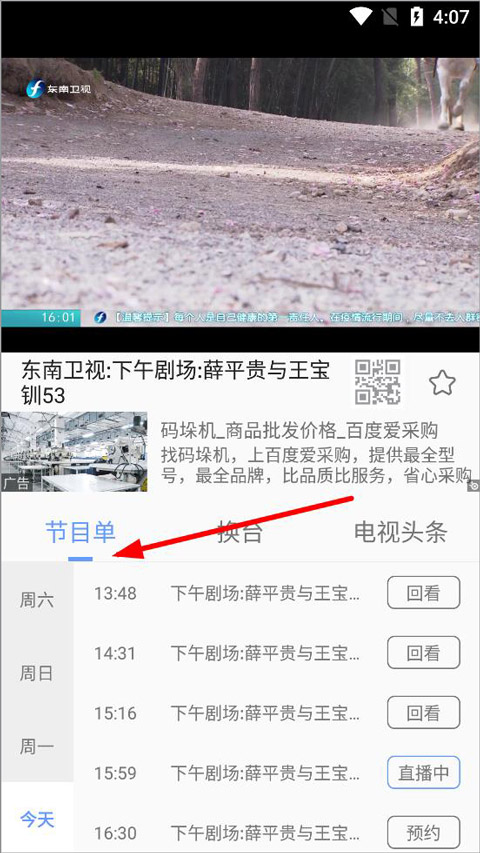 2、下拉可查看热播卫视,点击进入可查看卫视节目单详情以及剧集;