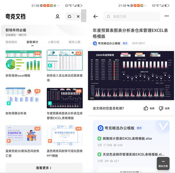 夸克文档拥有精美PPT、表格、简历等海量工作模板,一搜就有,轻松复盘。模板下,总结中的数据展示加分,有理有据,让老板能迅速抓到重点,脱颖而出。pS:许多模板都是免费下载的哦,用更少的时间找精美模板,得到更优秀的年终总结。
