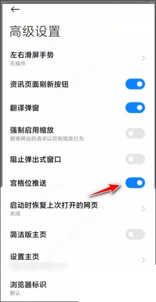 5、接下来在高级设置页面中,我们在页面上找到“宫格位推送”选项,点击该选项后面的开关按钮将其打开。