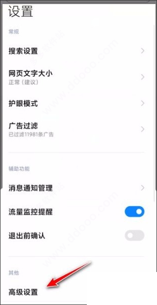 4、接着在设置页面中,我们在页面下方找到“高级设置”选项,点击该选项就可以进入到高级设置页面。
