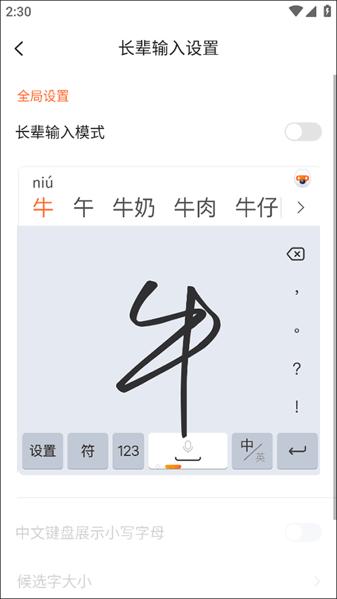 【长辈模式】支持设置中文键盘展示小写字母,更贴合长辈拼音使用习惯。