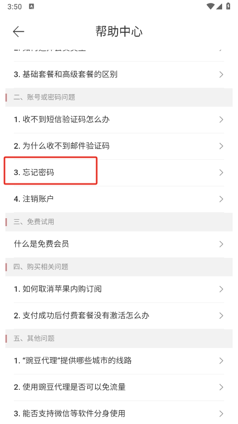 2、进入到帮助中心,这里可以解答用户的各种问题,其中的忘记密码是你们常常需要的。