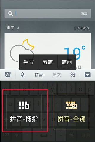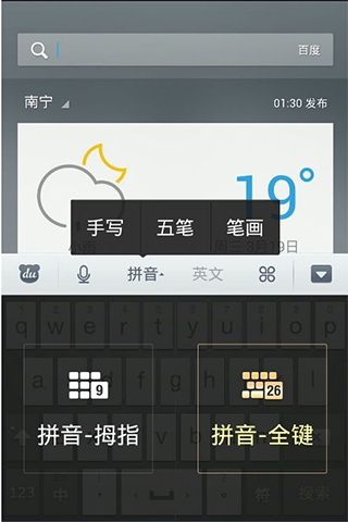 8、五笔模式:百度输入法一加定制版的五笔模式是与电脑一样是需要五笔输入的,它可以转换为键盘输入或者拇指输入。