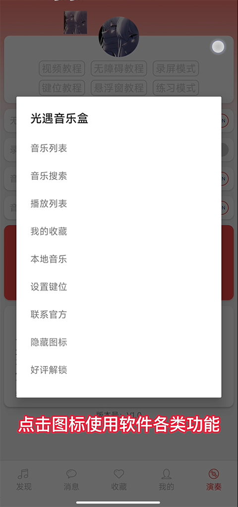 2、无障碍故障/无法运行,打开关闭连点三次解决或重启手机,后台锁定软件可减少闪退,然后点击“开始演奏”。
