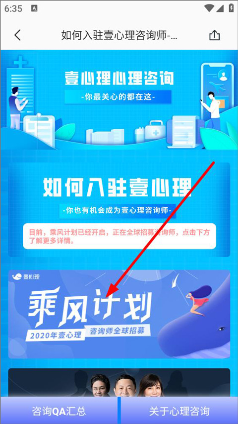 4、打开咨询师招募页面,用户可了解相关信息,点击申请入驻;