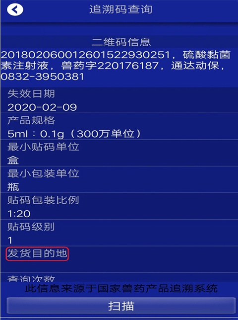 3、让整个兽药使用环节得到了严格的管控,养殖老百姓,可以通过简单的操作,直接将此软件下载下来,轻轻的扫描一下,既可以知晓兽药的真假,可谓好用有好使,所以说,国家兽药二维码,养殖保障全靠他,国家兽药二维码,动动手指辨真假!