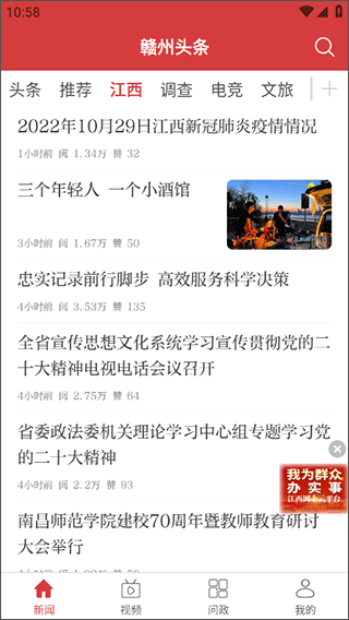 1、打开app就可以进入新闻页面,这里可以查阅赣州最新最热的新闻资讯