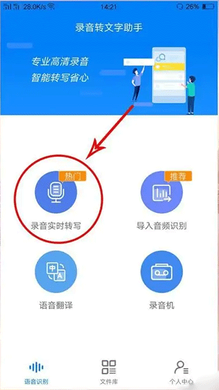 1、选择我们需要使用的录音实时转写功能
