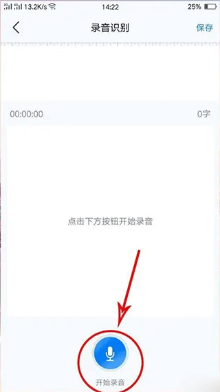 2、进入功能界面后,点击下方的蓝色按钮进行语音转写