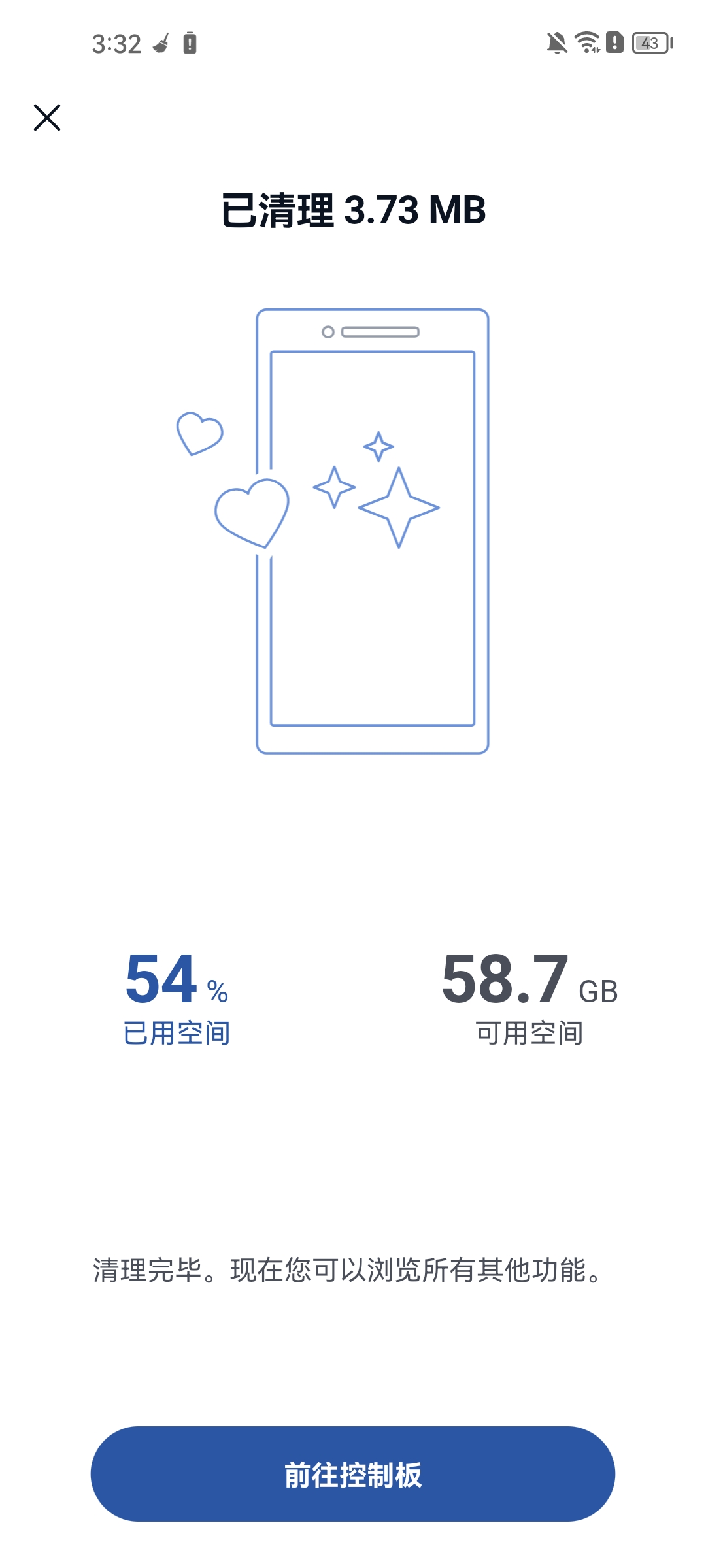 ②已完成清理,可以去主页点击控制面板