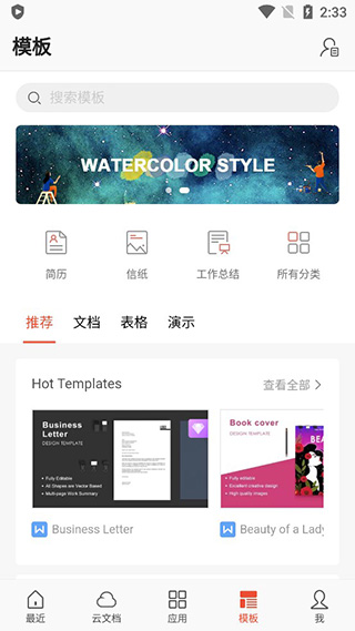 新建文字文档,并提供信纸、简历、合同等模板-打开26种文字格式文档,包括加密文档
