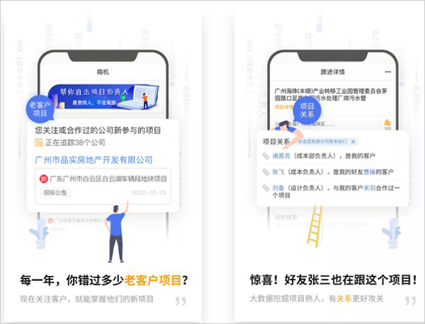 1、关系大数据帮你高效链接关键人推荐有关系的优质项目,帮你找到项目关系线索,签单快人一步