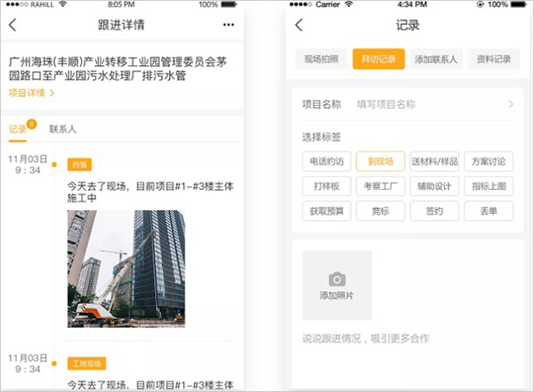 随时记录项目跟进情况,拍现场,做笔记,提高工作效率和业绩。