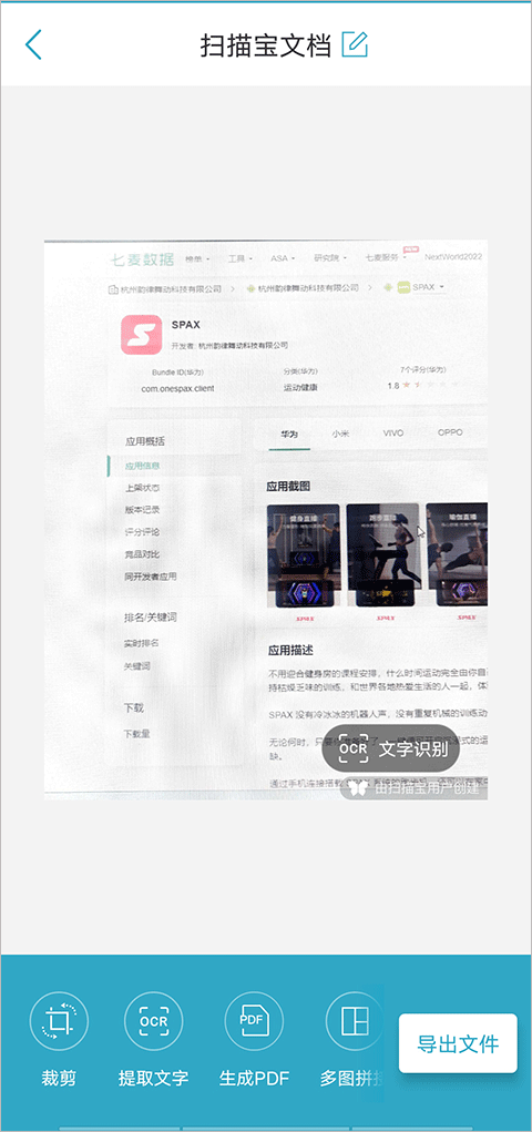 想要在扫描宝app中去除水印,那么你可以在扫描文档结束后,点击下方“导出文件”。