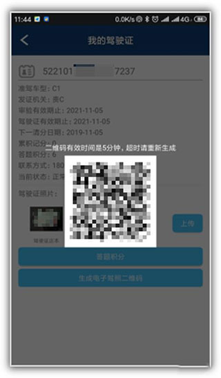 10、上传成功后,即可点击“生成电子驾照二维码”。