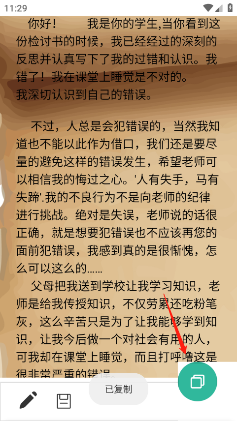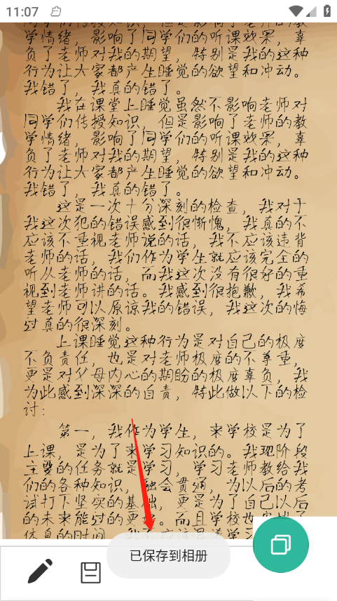 1、在生成检讨书页面点击下方的文件图标将该文本保存到相册,即可打印出来。
