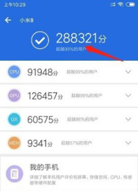 4、等待安兔兔跑分测试完之后,我们就可以看得到我们手机的跑分情况了。