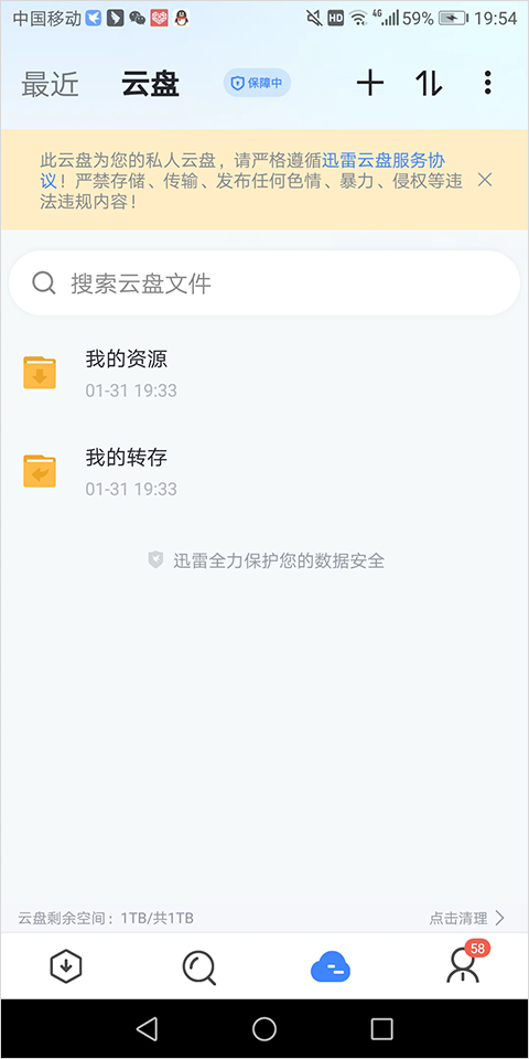 会员专享最高6T云盘,安全存储文件,可存3000部高清视频