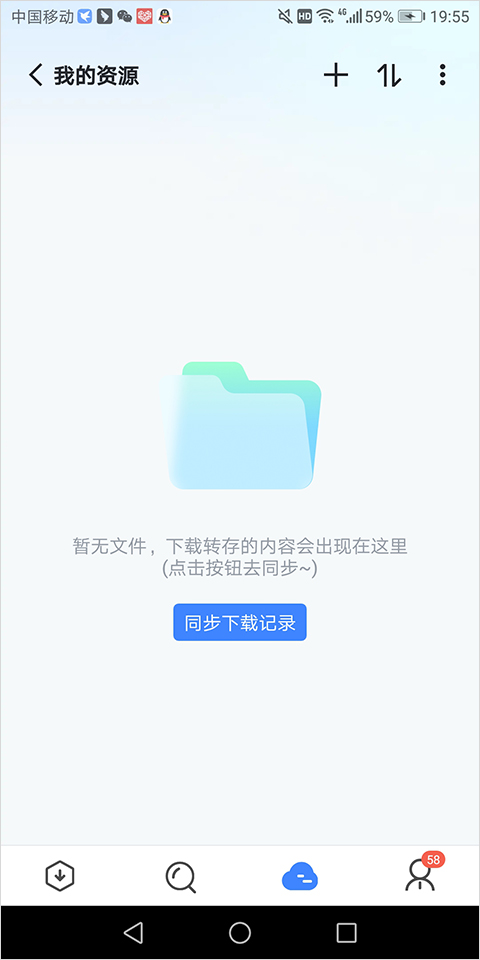 4、如果用下载记录消失,可以前往首页的【已完成】页面中,点击文件右侧的【云同步】按钮(下图绿色箭头所指)