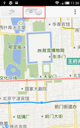 7、当你不想继续使用神行者定位功能时,请将主界面的开关按钮关上,坐标图标将会隐藏,之前设置好的虚拟位置失效,