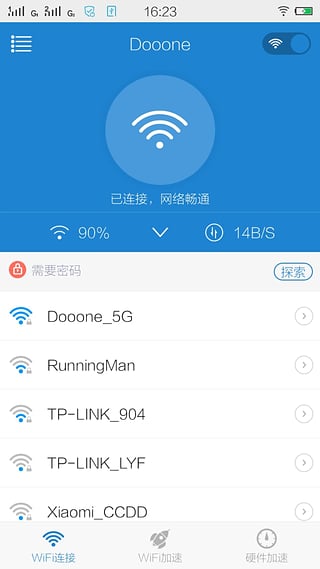 3、界面清新,运行流畅,wifi上网加速器能自动优化wifi信道及网络宽带,减少wifi内存,减少网络丢包,让用户流畅上网,告别网络卡顿。