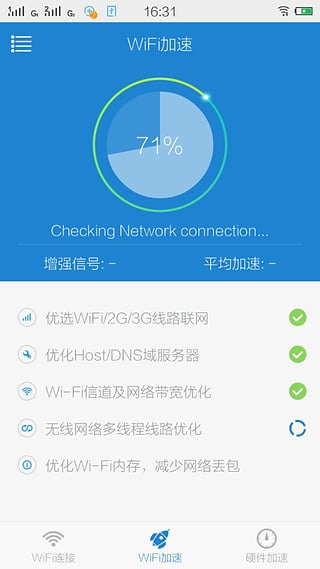 相信很多朋友都连接过无线网,当信号不是很强又必须联网时,都会想方设法将网络变强。今天小编就给大家带来这款wifi上网加速器,它是一款能够实现上网加速的安卓手机软件,通过优化手机的wifi连接参数,采用最先进的编码技术和算法,有效增强手机与WiFi发射源之间的信号连接状态,从而达到上网加速的目的。