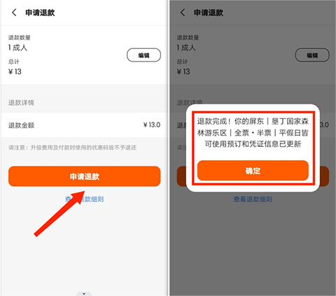 6、确认好数量和金额后,最后选择“申请退款”就可以退票退款了。