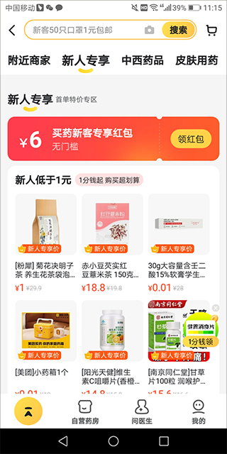 3、进入药店商家,领取商家在平台上提供的优惠福利
