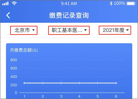 3、你还可以点击页面头部的筛选项,通过筛选参保地、险种类型和缴费年度来查询你需要的缴费记录明细。
