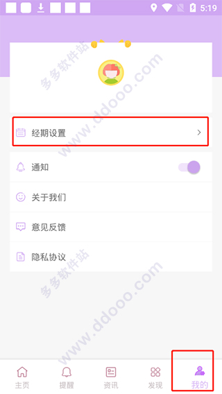1、月经期助手怎么设置月经周期?点击【我的】;
