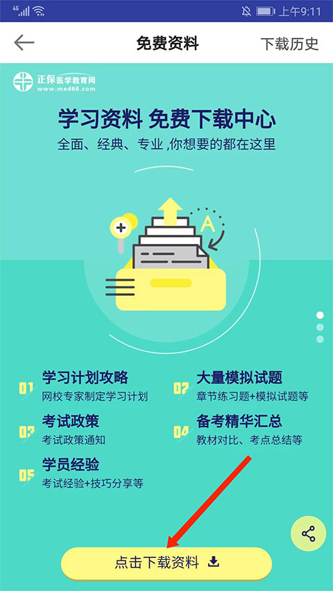 3、进入免费资料界面,选择下方“点击下载资料”选项,