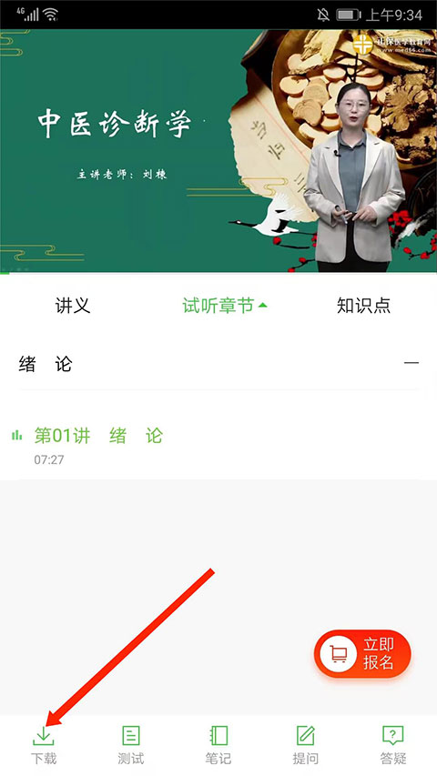 5、进入视频课程播放界面,选择左下方“下载”即可下载视频。
