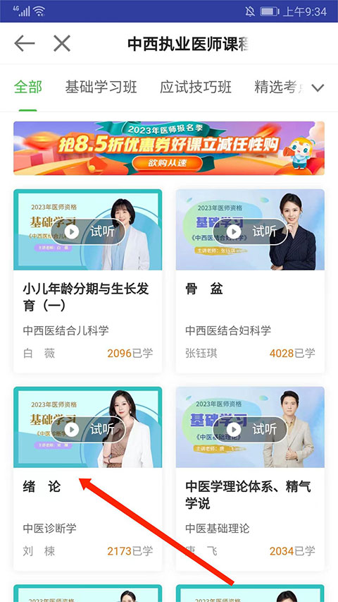 2、进入我的学习界面,选择上方“免费试听”选项,
