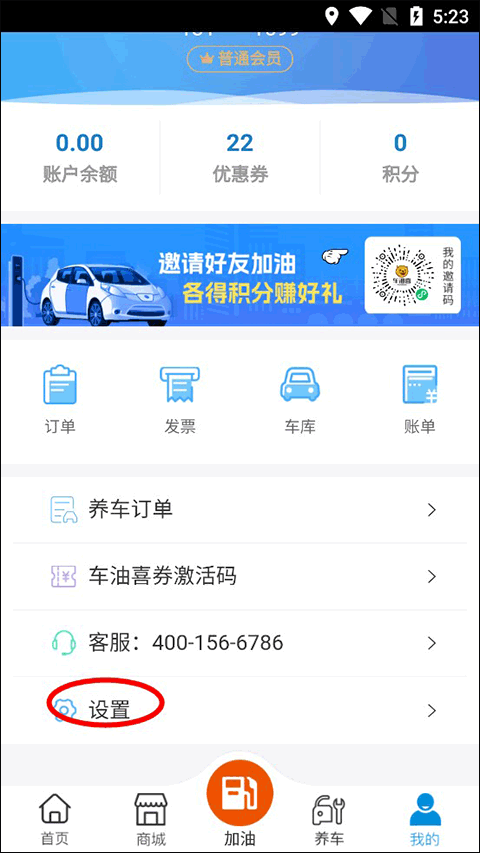 1、进入车油喜app,点击底部的“我的”进入个人界面;