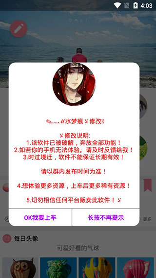 它的功能也很强大,比如每天推荐时尚头像,让你的朋友圈瞬间变得潮起来。还有头像预览功能,可以随意调节位置和大小,简直贴心到极致!破解版更是解锁了所有VIP权限,没有广告困扰,用起来更畅快。