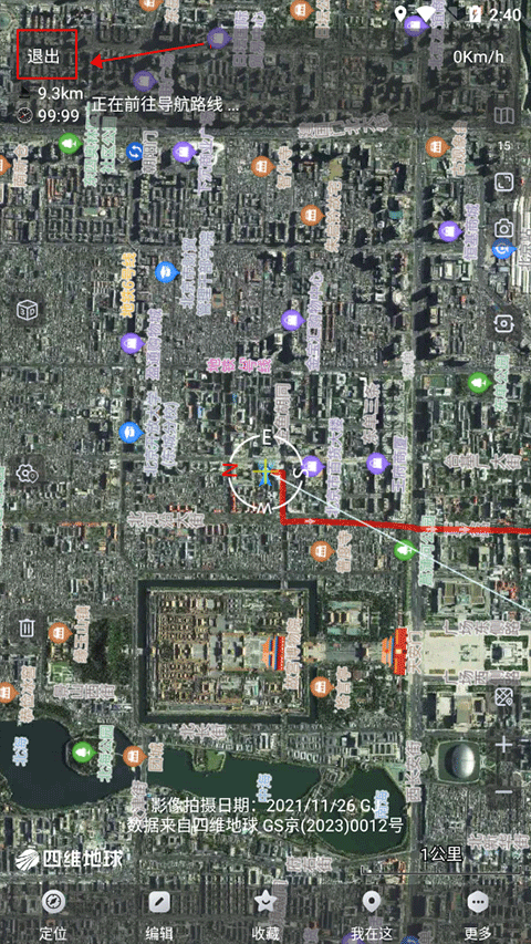 4、然后就跟着路线前往目的地即可,若中途想退出点击左上角退出功能即可