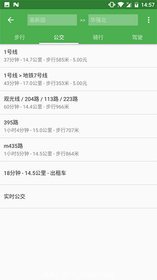 支持步行、公交(支持跨城)、骑行、驾驶路线规划。