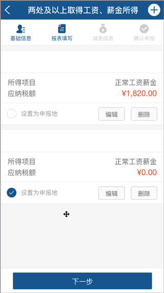 4、输入全部工资后,显示所得项目应纳税额,点击下一步;