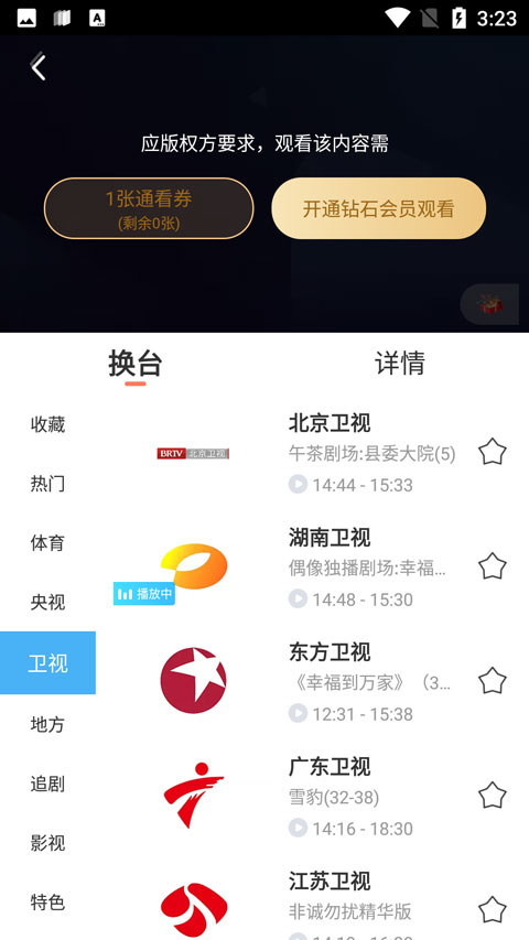 电视直播、央视专区、卫视及地方台、特色直播频道随时回看,随心预约!