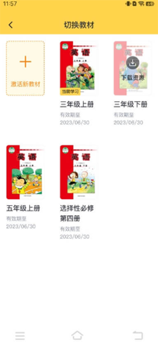 点击已激活的教材封面,可切换该教材为“当前学习”教材;