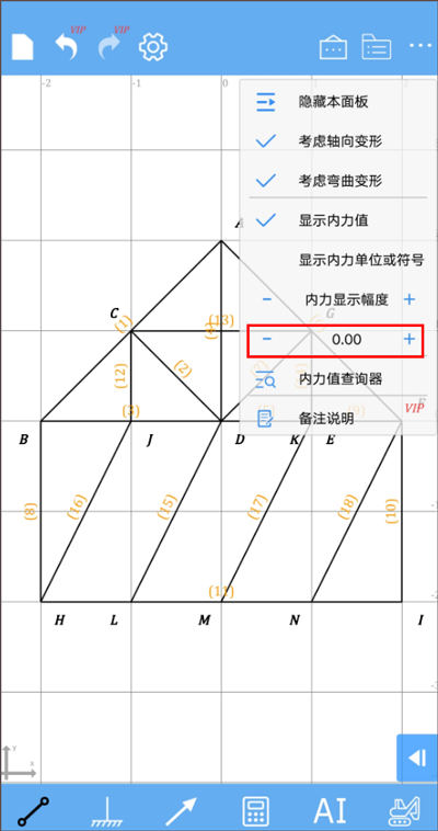 我特别喜欢它的智能模块,能模拟人脑分析解题步骤,对学习结构力学超级有帮助。VIP功能也很划算,一次购买就能永久使用,包括保存打开、撤销还原、工程模块等功能,性价比很高。软件界面还支持暗黑主题,科技感满满,看起来很舒服。