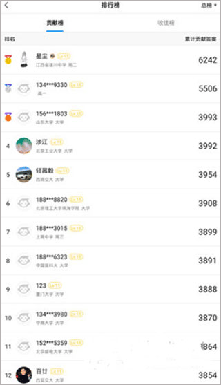 3、点击“排行榜”即可查看排行榜上的各项数据了