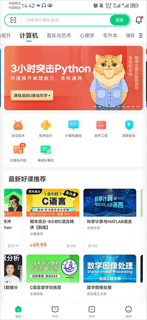 所谓活到老,学到老!在即将要面临的考研学子们,亦或是要完成其他学业考证的用户,本次小编为大家带来了慕课网中国大学mooc app,这是一款非常不错的在线教育平台,该软件中汇聚了985、211等众多名校开设的讲堂,优质的名师资源,在线为你答疑解惑,无论是基础科学、文学艺术、哲学历史,还是经管法学、工程技术、农林医药等等,涵盖时下数百门课程的丰富资源,只有你想不到,没有看不到的授课资源。