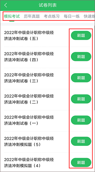 4、在【试卷列表】,点击其中任意一试卷开始进行刷题即可。