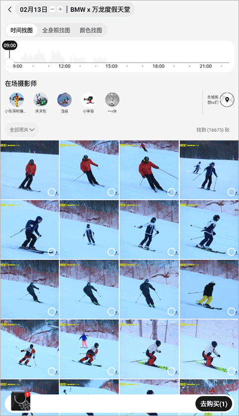2、GOSKI是按拍摄时间上传照片,滑呗可以按照你的拍照时间,全身照找图还有服装的颜色去找自己的照片,就很容易找到自己照片。如果照片满意,你可以付费下载高清图片,价格根据照片的清晰程度定的。
