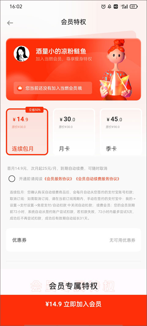 连续包月:您确认购买自动续费商品后,会每月自动从您签约的支付宝账号扣款;