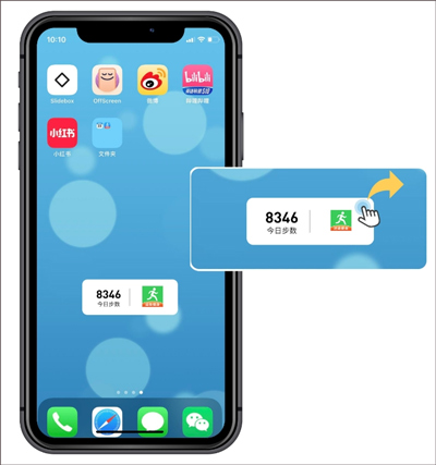 2、在小工具中,找到健康运动计步器步数小工具,按住不放,然后拖到桌面的某个适当位置,松放即可。